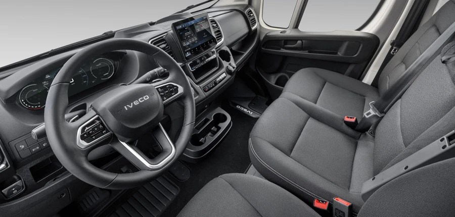 La navigazione è semplificata grazie alle mappe TOM TOM 3D, disponibili sul display da 10”, e all’integrazione con Apple CarPlay™ e Android Auto™. Inoltre, con il servizio IVECO Smart Routing, i conducenti possono viaggiare senza preoccupazioni: niente più ansia da autonomia.