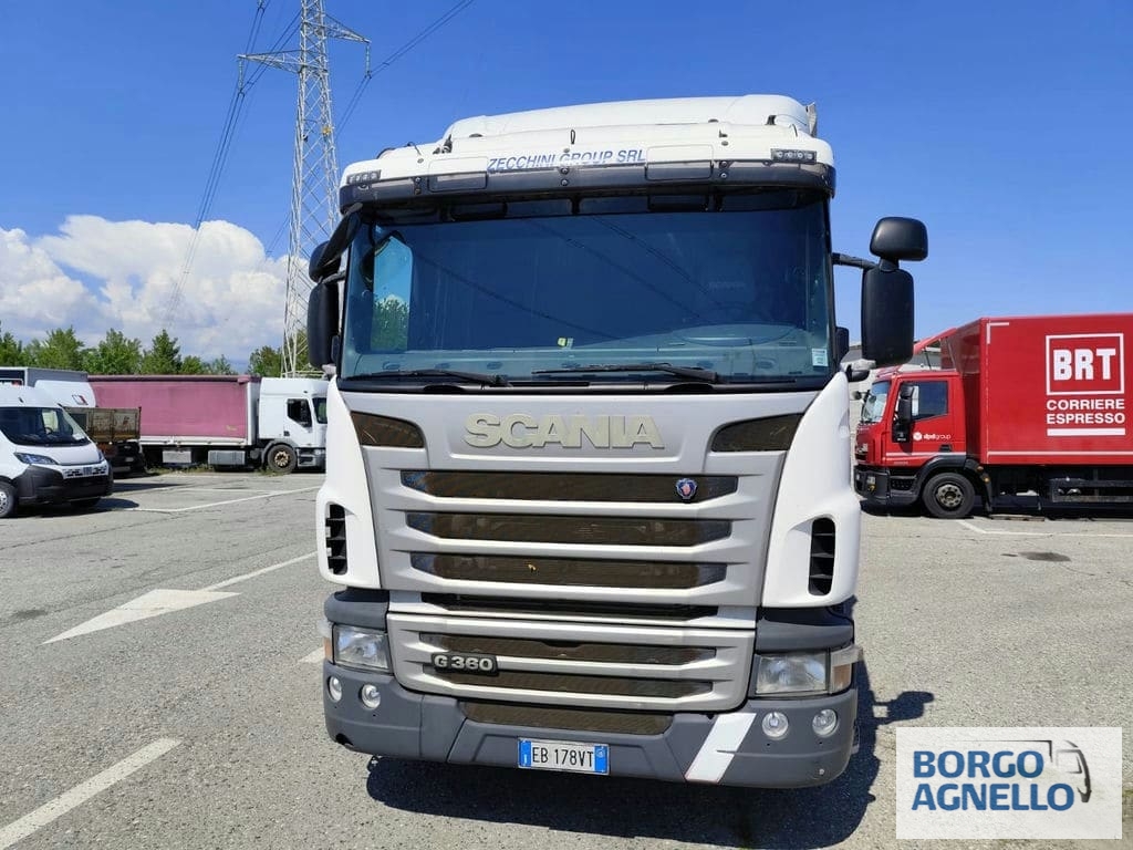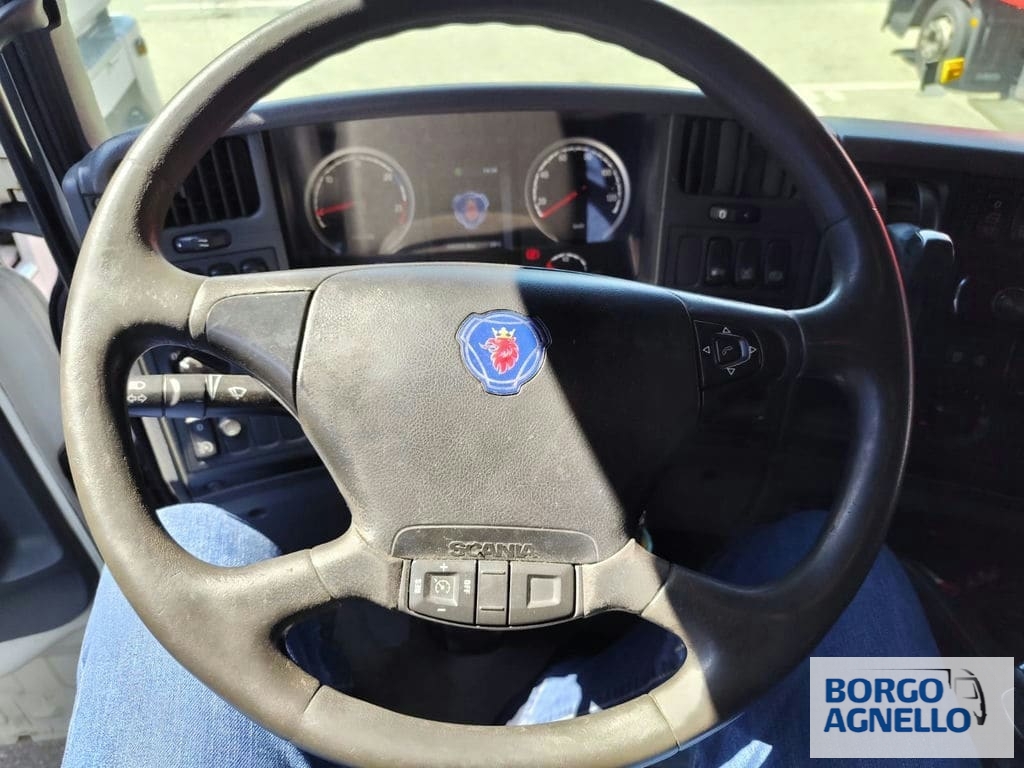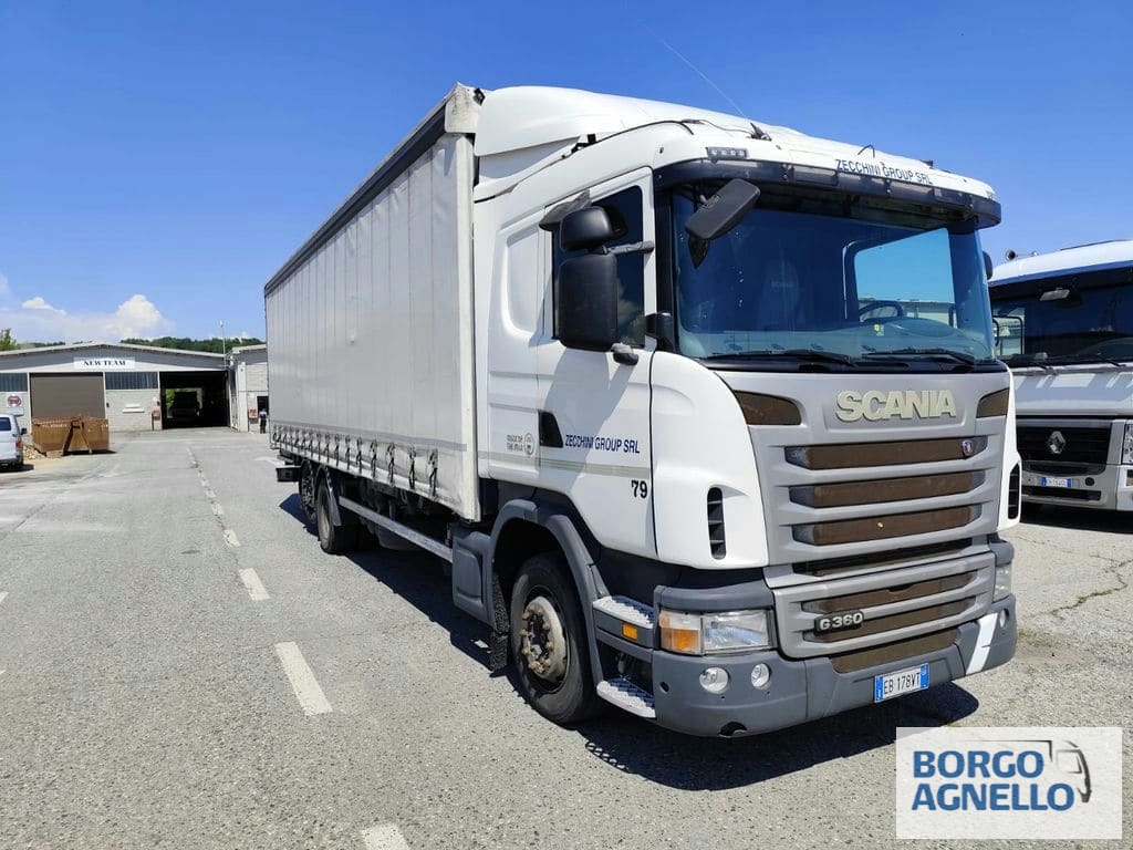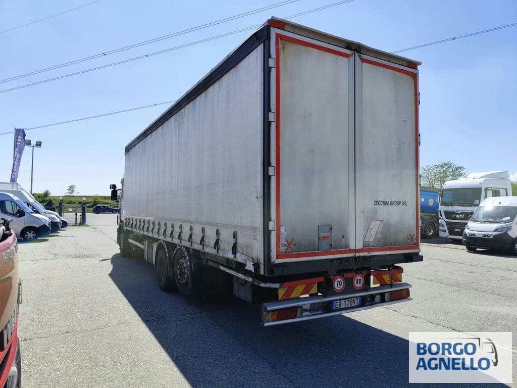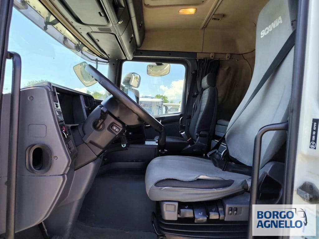 Descrizione veicolo: Scania CV360, centina e telo scarrabile, dimensioni allestimento: 9500X2450X2500